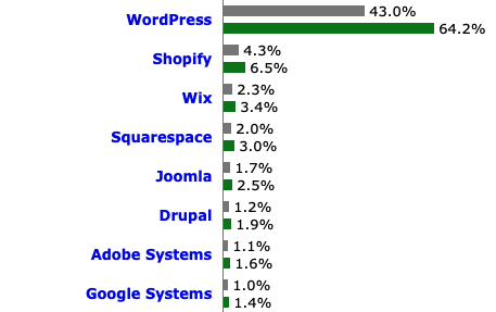 WordPressとは、世界No.1シェアのCMS(コンテンツマネジメントシステム)のこと。全世界の約65%のWebサイトがWordPressで作られています。