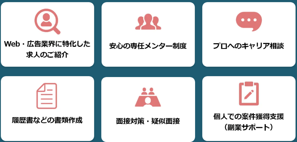 運営会社のSharewayは、スクール以外に「人材紹介」「広告代理」といった事業も展開しています。卒業後は案件を獲得して稼いだり、就職・転職したりと理想のキャリアを描けるでしょう。